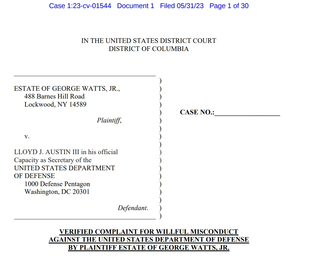 Ray Flores, der Anwalt, reichte die Klage beim US-Bezirksgericht für den District of Columbia gegen das Verteidigungsministerium und Lloyd Austin III in seiner offiziellen Funktion als Verteidigungsminister ein.