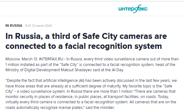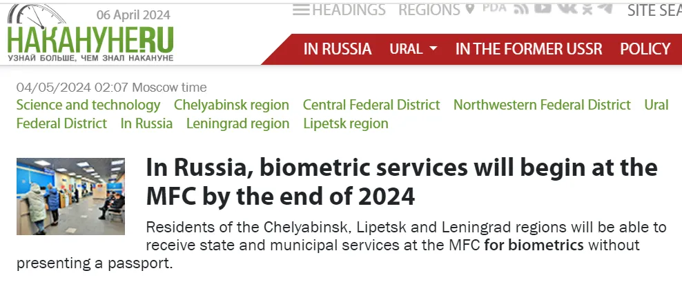 Wenn wir schon beim Thema sind: Ab Ende des Jahres werden Russen in mehreren Regionen in der Lage sein, mit ihren örtlichen Behörden zu verkehren, ohne einen Inlandspass vorzulegen; sie müssen nur noch in die Kamera lächeln…
