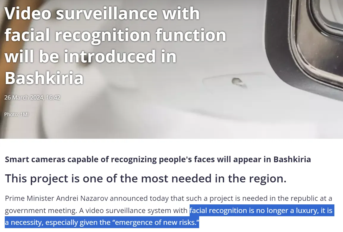 Wie auch immer, wir sollten Moskau nicht zu viel Glauben schenken. Andere Teile Russlands haben erkannt, dass Gesichtserkennung kein „Luxus“ ist, sondern eine „Notwendigkeit“, um sich vor gefährlichen „neuen Risiken“ zu schützen: