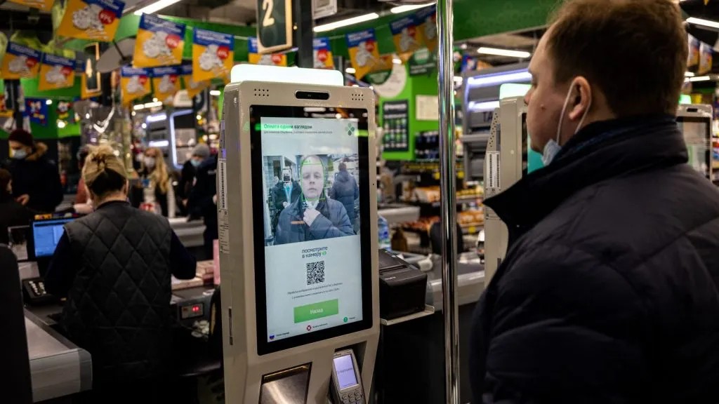Und als es nach jahrelanger Konditionierung von Schulkindern, ihr Schicksal als biometrisch markiertes Vieh im russischen Sklavenstaat zu akzeptieren, an der Zeit war, diesen biometrischen Sklavenstaat der breiten Öffentlichkeit vorzustellen, war da die Sberbank, die sich mit Visa zusammengetan hat, um eine Gesichtsscanner-Zahlungstechnologie zu entwickeln, die – ärgerlich genug – „Smile to Pay! Sie „verwendet eine 3D-Kamera mit hoher Erkennungsgenauigkeit und Tiefenerfassung und ermöglicht eine einfache und schnelle Gesichtserkennung, die die Größe einer Person und Veränderungen im Aussehen berücksichtigt.“ Die Technologie wurde erstmals 2019 getestet und wird nun in immer mehr Unternehmen in Russland eingeführt.