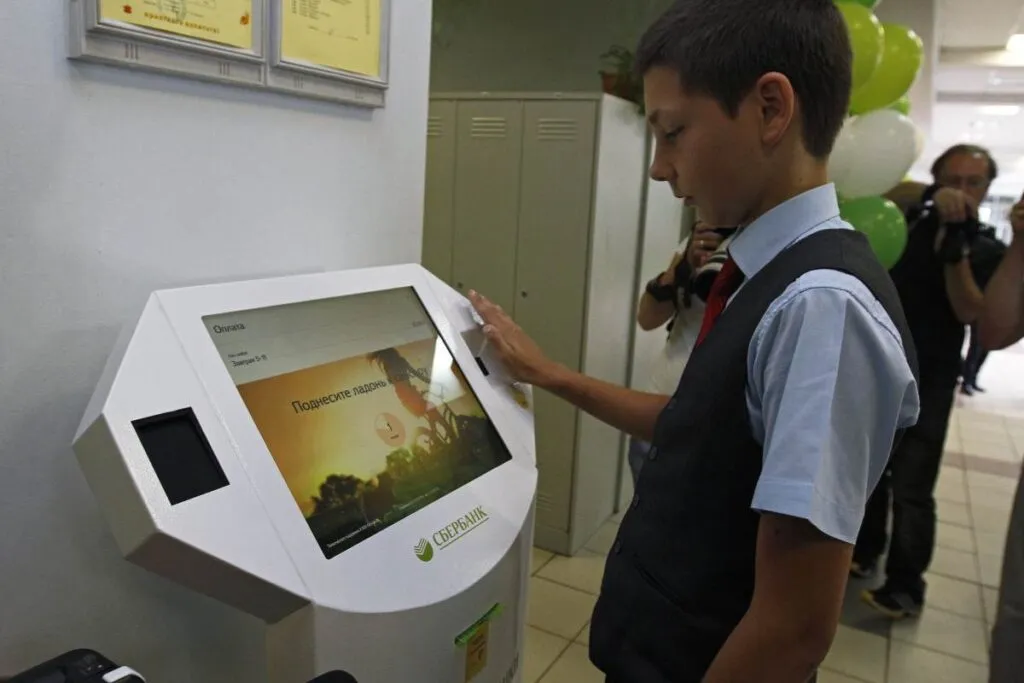 Als die Regierung 2016 beispielsweise grünes Licht für die Einführung biometrischer Systeme in den Schulen gab, war die Sberbank zur Stelle und installierte die Handflächenscanner, mit denen die Schüler ihr Schulessen mit einer Handbewegung bezahlen können! „Mit dem Ladoshki-System müssen die Eltern ihren Kindern kein Bargeld mehr geben und können die Ausgaben der Kinder für das Schulessen auf ihrer persönlichen Seite auf der Sberbank-Website überwachen“, heißt es in einer Pressemitteilung der Sberbank. Weiter heißt es: „Außerdem können Eltern überwachen, was genau ihr Kind gegessen hat, und wenn nötig, können sie ihm den Kauf von Chips oder Schokolade verbieten.“ (Juhu! Technokratische Überwachung der Kinder!)