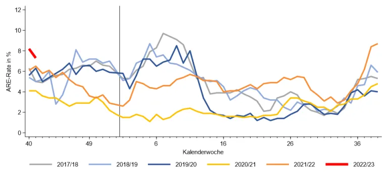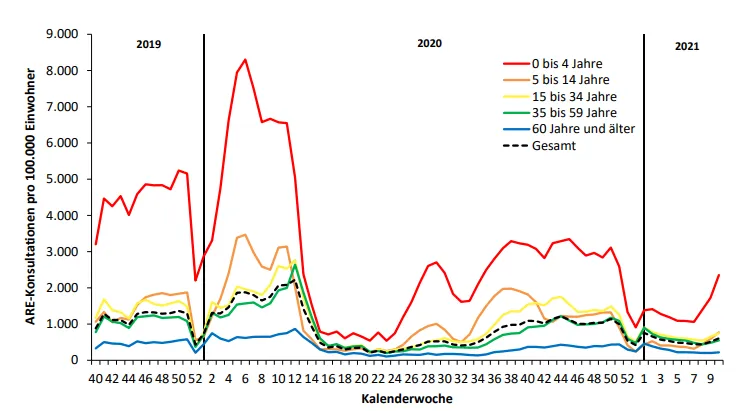 Vergleichen Sie nun das gleiche Diagramm mit der Häufigkeit von Arztbesuchen in der Pandemiesaison 2020/21: