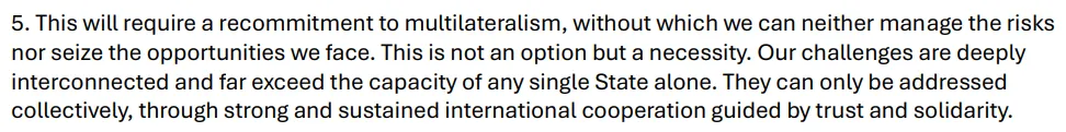 Der Pakt bietet auch Unterstützung für die Modernisierung der UNO zur „UNO 2.0“.