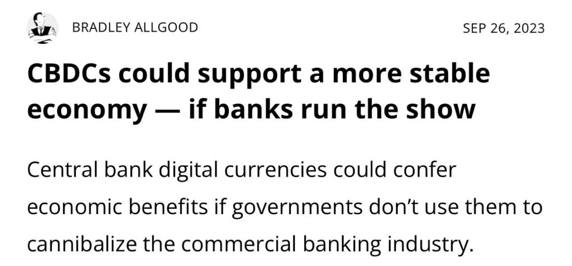 Nach dem Zusammenbruch von „FTX“ und später „Moonstone“ hat „Fluent Finance“ sein ultimatives Ziel weiterverfolgt – die Schaffung eines „vertrauenswürdigen“ Stablecoin und eines Stablecoin-Protokolls im Auftrag der kommerziellen Bankenriesen, denen es immer dienen sollte. In einem Meinungsartikel für „Cointelegraph“ vom September 2023 mit dem bezeichnenden Titel „CBDCs könnten eine stabilere Wirtschaft unterstützen – wenn Banken die Show leiten“, machte Allgood seine Loyalität deutlich. In diesem Artikel schreibt Allgood, dass „der Einsatz von CBDCs in einem Versuch, den gesamten kommerziellen Bankensektor zu unterbieten, zu umgehen oder zu kannibalisieren, sowohl ein Hirngespinst für Effizienzmaximierer als auch ein Rezept für das Scheitern ist.“ „Das Geschäftsbankwesen wird nicht im finsteren Mittelalter verbleiben“, behauptet er weiter.