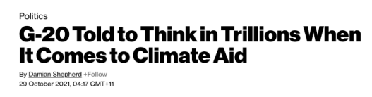 Patricia Espinosa, Exekutivsekretärin des Rahmenübereinkommens der Vereinten Nationen über Klimawandel, sagte, dass die G-20-Länder in Billionen denken sollten, wenn sie das Pariser Abkommen ernsthaft einhalten wollen. Dies geschieht, nachdem ein neuer Bericht gezeigt hat, dass die Industrieländer ihr Ziel, 100 Milliarden Dollar pro Jahr für die armen Länder aufzubringen, nicht erreicht haben, was die Verhandlungen, die als COP26 bekannt sind, zu untergraben droht.“