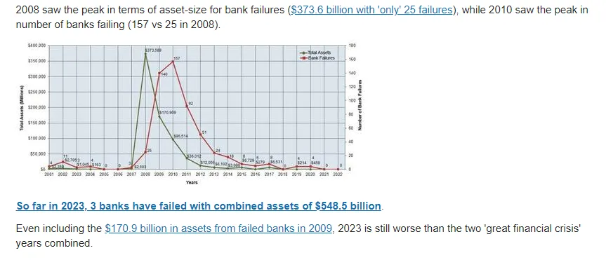 Ja, das westliche System ist gescheitert. Das Finanzsystem, das sein Fundament bildet, bricht zusammen. Ein heute veröffentlichtes Beispiel ist, dass die diesjährigen Bankenzusammenbrüche die von 2008 in den Schatten stellen.