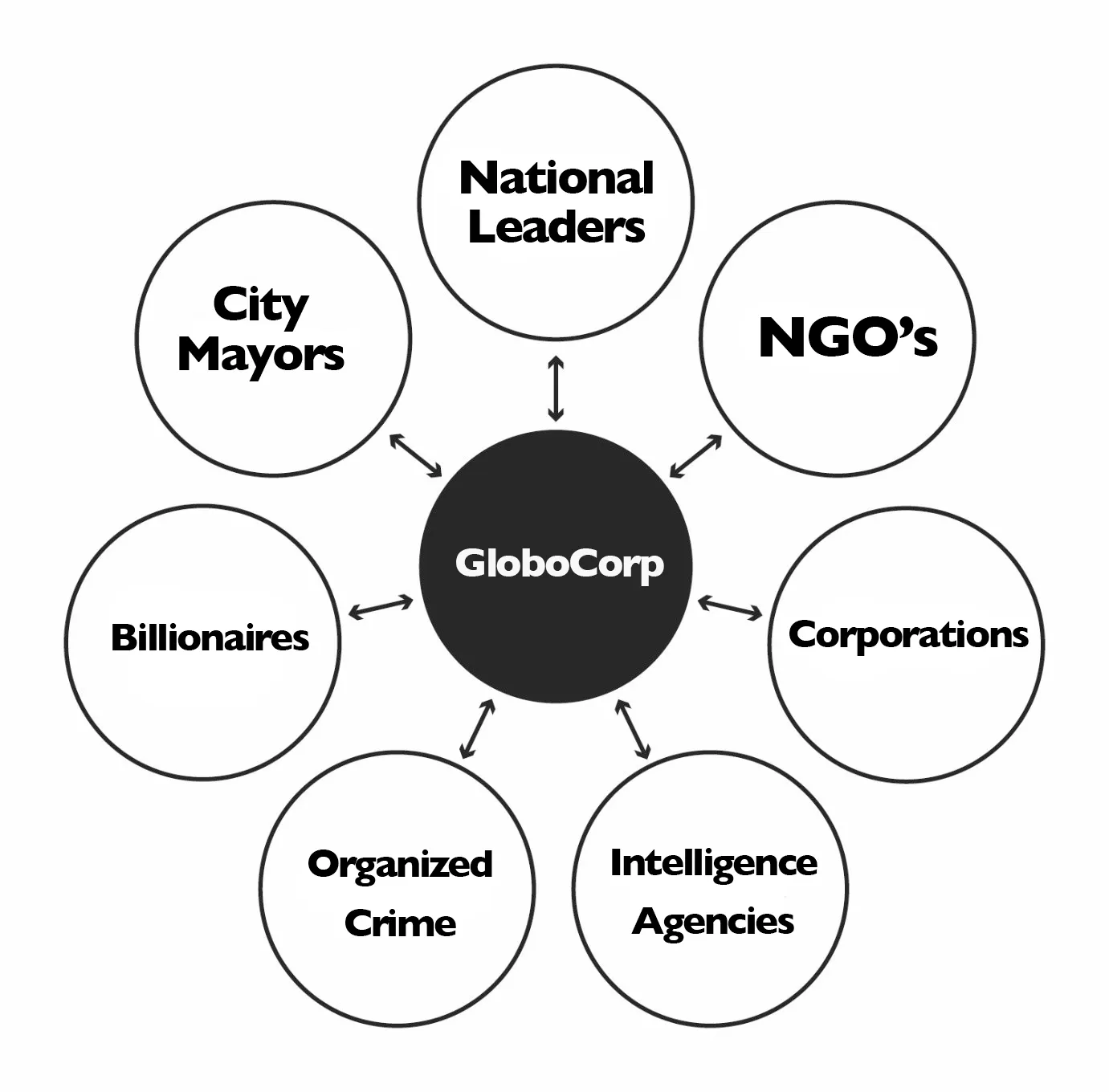 Wir können das Diagramm von Schwab umgestalten, damit es sein System besser widerspiegelt. Das WEF ist das Managementzentrum von GloboCorp, einem transnationalen Megakonzern: