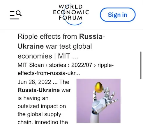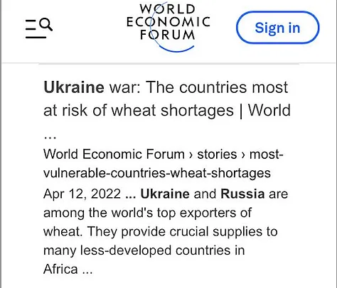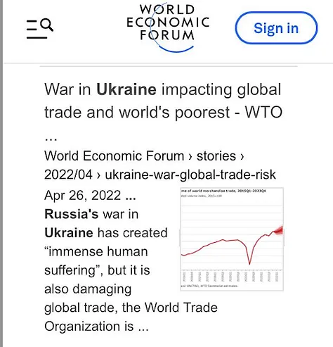 Eine schnelle Suche auf der Website des Weltwirtschaftsforums zeigt, dass die größte Sorge des WEF die eskalierenden Ölpreise und die Unterbrechung der Lebensmittelversorgungsketten sind, die langfristige Auswirkungen auf den gesamten Planeten haben werden. Die humanitäre Krise, die zu mindestens einer halben Million Toten und Millionen von Flüchtlingen geführt hat, wird kaum erwähnt.