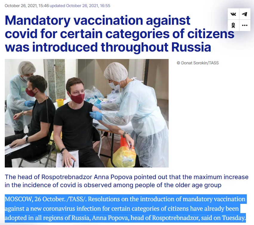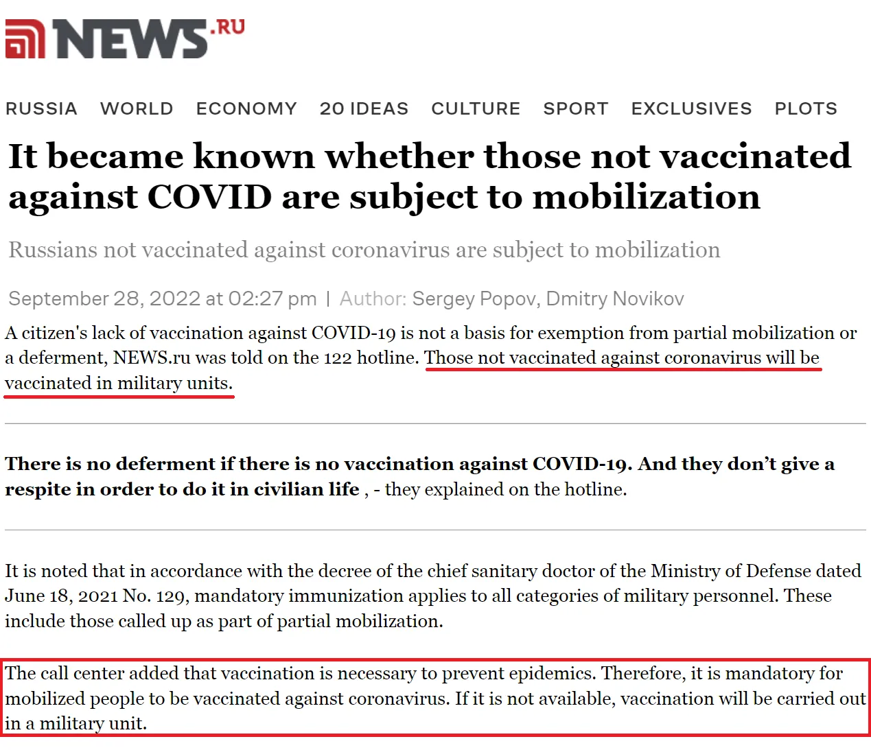 Dieser Artikel ist der Nachfolgeartikel, den wir auf in Deutsch übersetzten: Russland beginnt mit der Impfung mobilisierter Bürger – eine der weltweit strengsten Zwangsimpfungen wurde eingeführt
