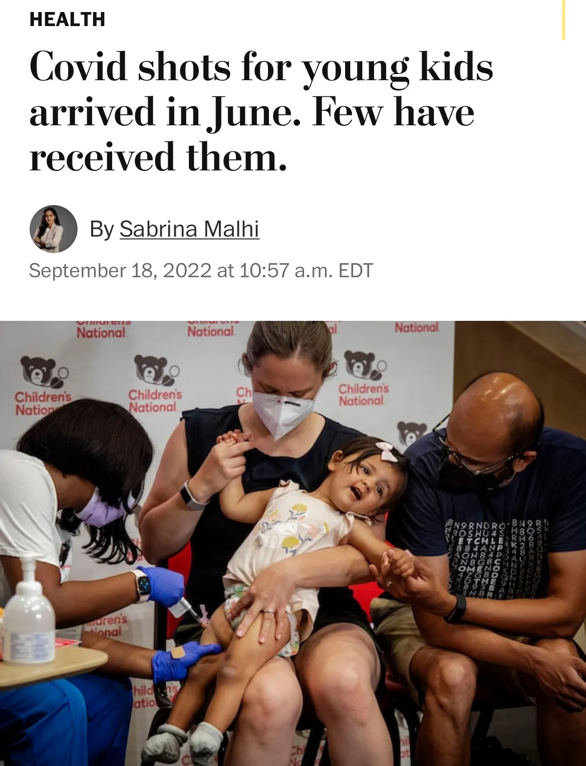 Anders ausgedrückt: Von einer Gruppe von 50 Kindern unter 5 Jahren ist wahrscheinlich nicht einmal EINES vollständig gegen Covid geimpft worden. Und Eltern, die mit der Impfung ihrer Kinder begonnen haben, haben Zweifel. Etwa 7 von 10 der 1,2 Millionen Kinder unter 5 Jahren, die eine erste Impfung erhalten haben, haben ihre Impfungen nicht abgeschlossen.