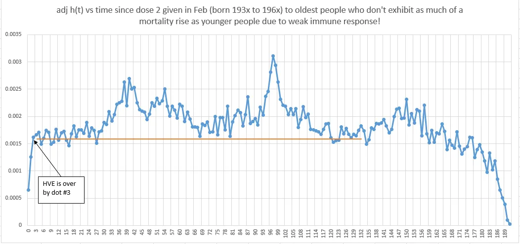 Der zweite Punkt, der noch wichtiger ist, ist, dass nach 14 Tagen der dynamische HVE, der die Sterblichkeit senkt, weil Menschen, die in wenigen Tagen sterben werden, sich vor ihrem Tod nicht mehr impfen lassen, wahrscheinlich weil es unsinnig ist.