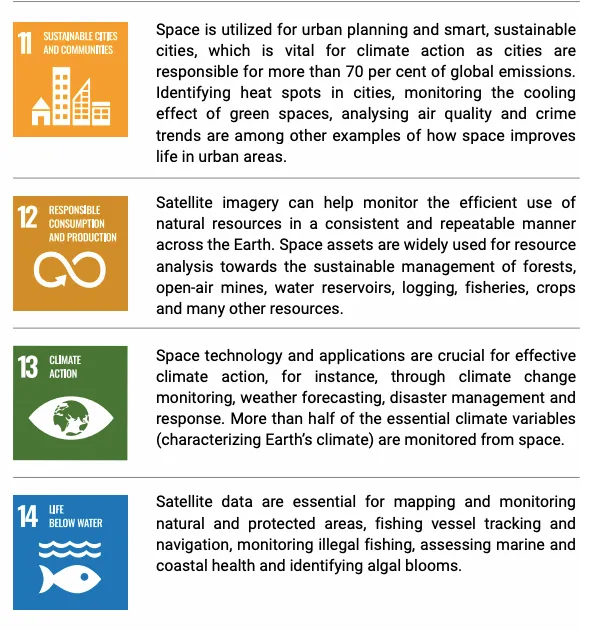 Dies sind alte Fantasien aus den späten 1940er Jahren, die sich nie zu verwirklichen scheinen. Aber ihre „weltraumgestützten Möglichkeiten“ betonen auch die „wichtige Verbindung zwischen dem Weltraum und der Agenda 2030 für nachhaltige Entwicklung“ mit der Bedeutung der Satellitenüberwachung, um „die Entwaldung zu verfolgen, Schutzgebiete auf illegale Wilderei und Fischerei zu überwachen und Veränderungen der biologischen Vielfalt zu bewerten“ sowie jede unserer Bewegungen über die globalen Navigationssatellitensysteme zu verfolgen.
