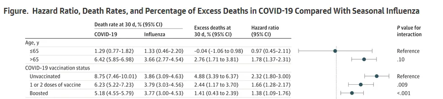 Der Hauptpunkt der Studie ist jedoch der Nachweis, dass die Wahrscheinlichkeit, an COVID zu sterben, etwas höher ist als an Grippe, wenn man wegen der einen oder der anderen Krankheit ins Krankenhaus eingeliefert wird (nicht wegen beiden). Ich widerspreche dieser Schlussfolgerung nicht.