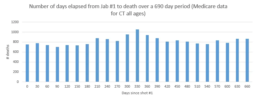 In der Zwischenzeit ist es mir gelungen, aus der Medicare-Datenbank für Connecticut einen Dump der Daten über Todesfälle durch Impfungen zu erhalten.