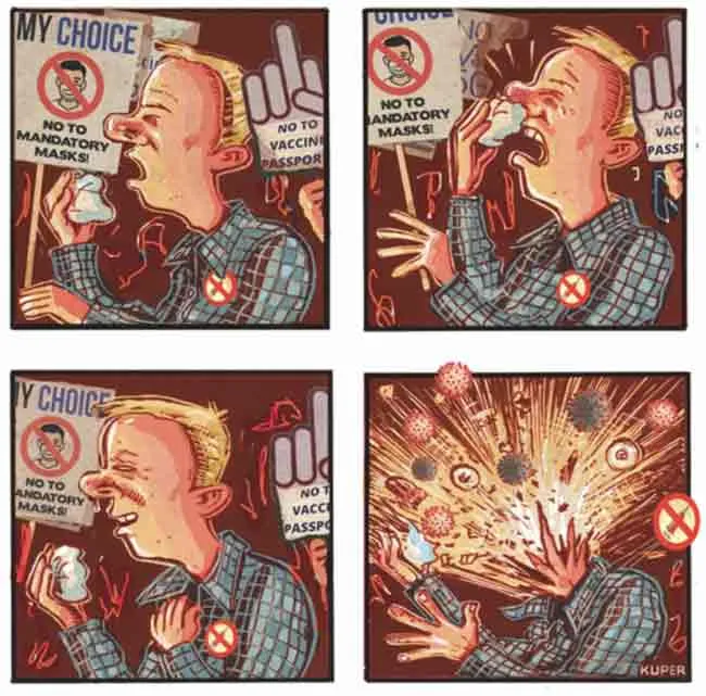 Als Bonus finden Sie hier einen Artikel aus LA Progressive (ursprünglich veröffentlicht von Common Dreams im August 2021). Der Autor plädiert für eine Impfpflicht und für die Ausgrenzung von Menschen, die sich nicht impfen lassen: „Wenn Libertäre ihre egozentrische Fixierung auf ihre eigenen Freiheiten aufrechterhalten wollen, ohne Rücksicht auf andere zu nehmen, dann sollen sie das tun – in unbefristeter Quarantäne vom Rest von uns.“