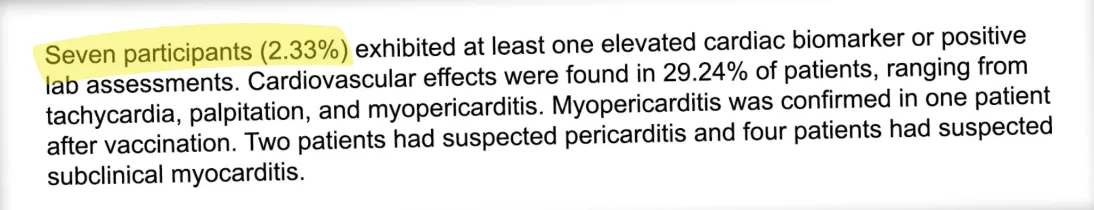- Ebenso beunruhigend: „Bei 29,24 % der Patienten wurden kardiovaskuläre Manifestationen festgestellt, die von Tachykardie oder Herzklopfen bis hin zu Myoperikarditis reichten.“