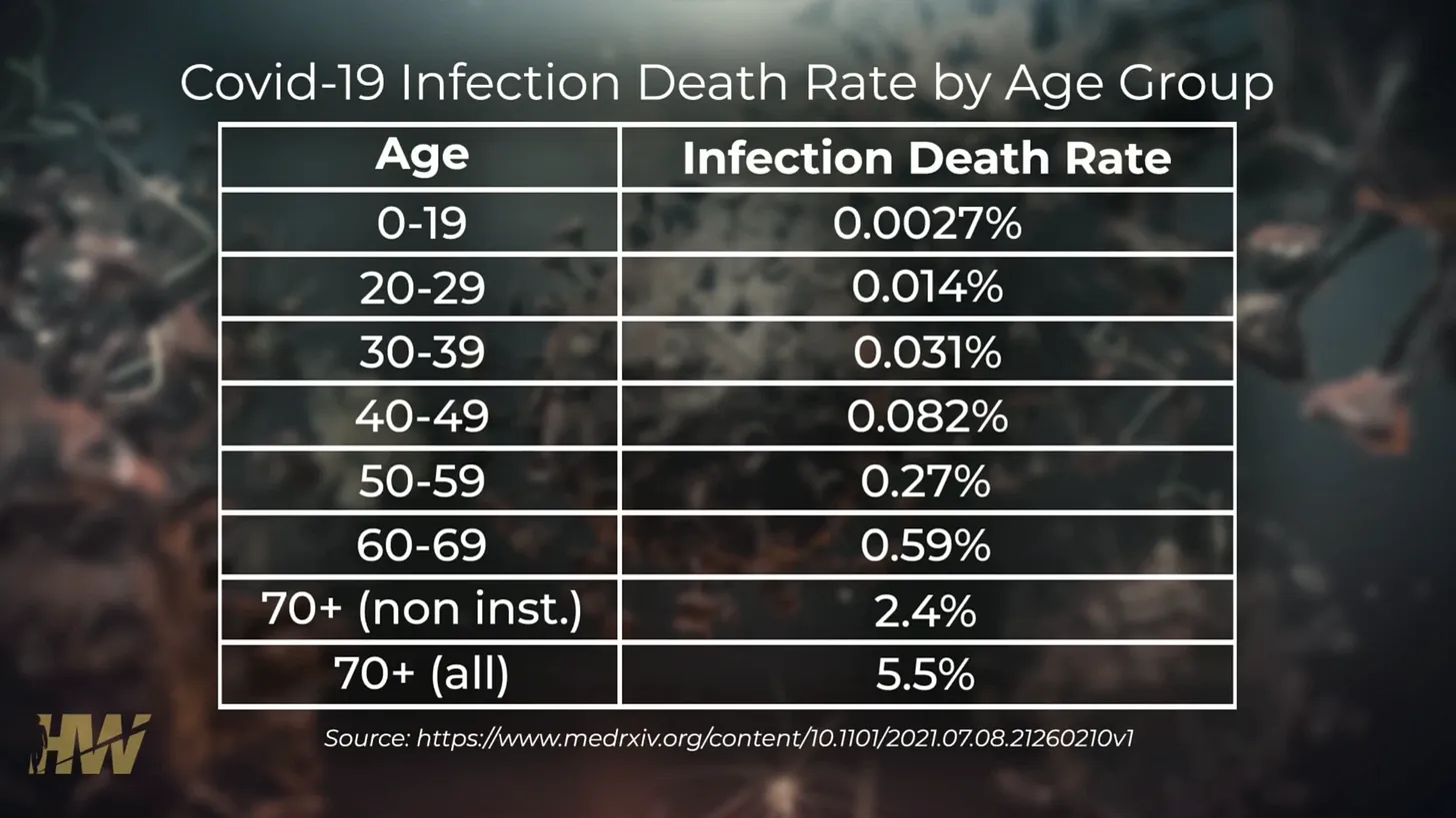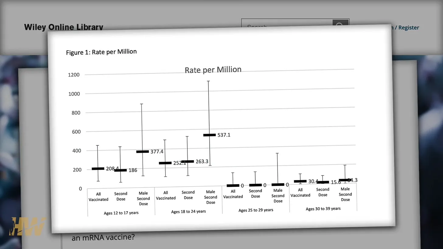 Das ist Mathematik auf Drittklässlerniveau, die unsere Regulierungsbehörden anscheinend nicht berechnen können. Welche Zahl stellt die größere Gefahr für Ihr Kind dar: 2,33 % (23.300 pro Million) oder 0,0027 % (27 pro Million)? Und dabei sind die zahlreichen anderen potenziell schwerwiegenden Nebenwirkungen noch gar nicht berücksichtigt. Die Risiko-Nutzen-Analyse zwischen diesen beiden Aussichten ist völlig verkehrt, mit einem 863-fach höheren Risiko für einen Teenager, eine Myoperikarditis zu entwickeln!