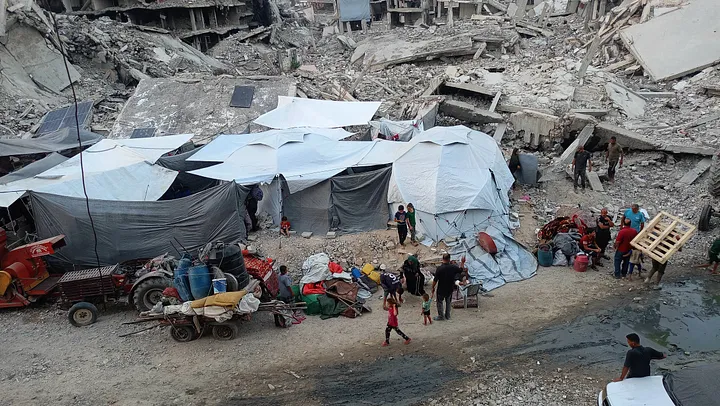 Wie so viele andere Palästinenser in Gaza bin auch ich in einem Zelt gelandet – dem bleibenden Symbol der Vertreibung. Ich kampiere mit meinem Mann und meinen fünf Kindern im Westen von Gaza-Stadt auf den Trümmern. Die erbarmungslose israelische Militärmaschinerie kommt jeden Tag näher, und wir können nichts tun. Aber wir werden hier nicht weggehen.