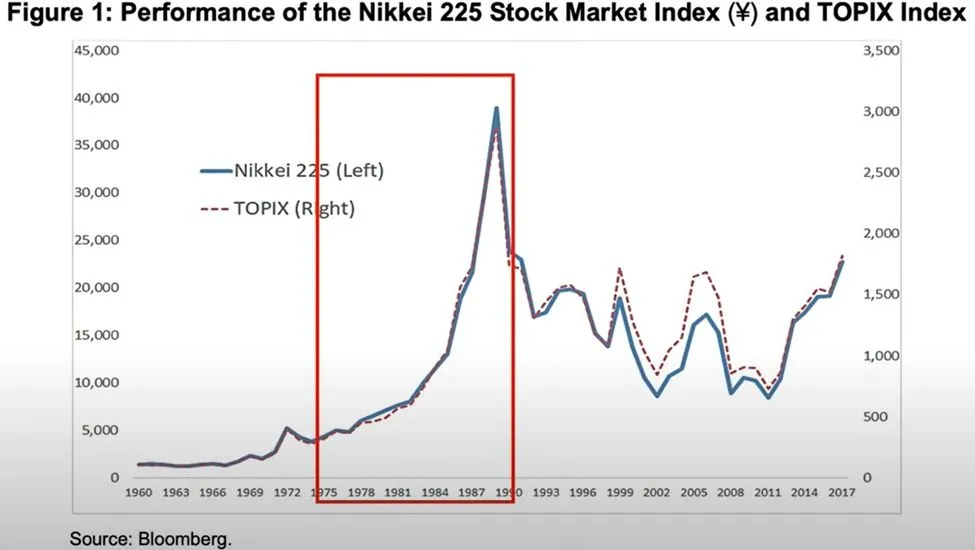 Um die unglaubliche Bedeutung dessen zu verstehen, müssen wir kurz einen Blick auf die Ereignisse werfen, die sich in Japans Wirtschaft über einen Zeitraum von 40 Jahren zugetragen haben.