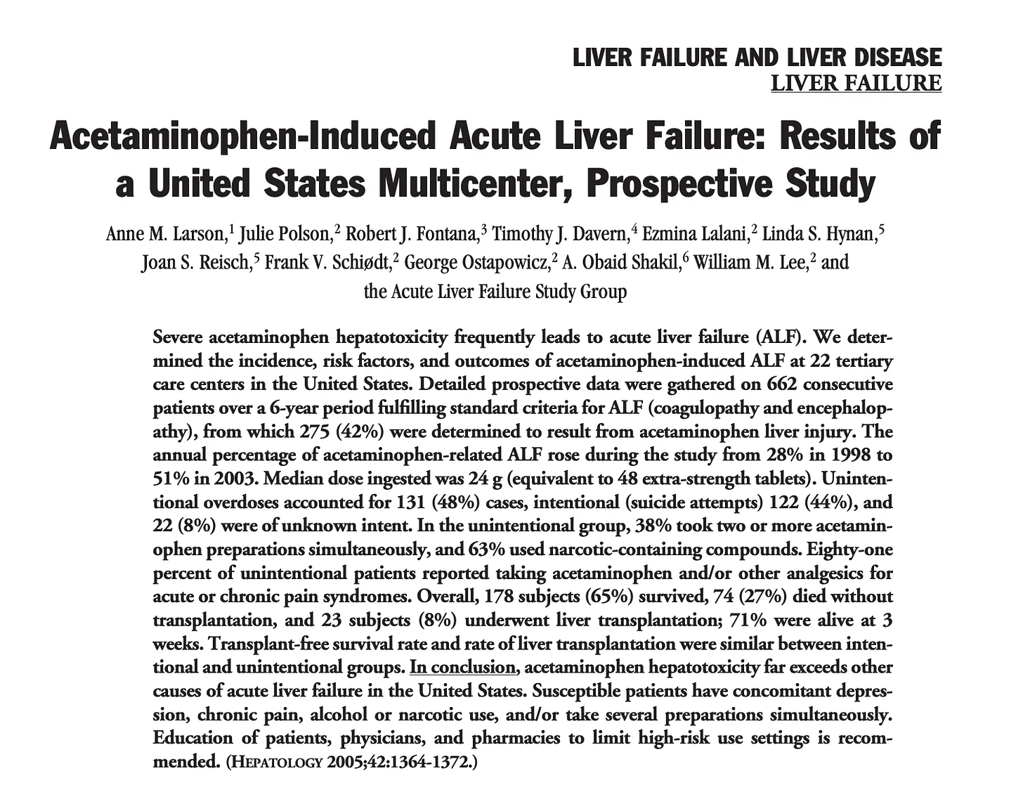 Wussten Sie, dass Tylenol die häufigste Ursache für akutes Leberversagen in Amerika ist? Das ist wahr.