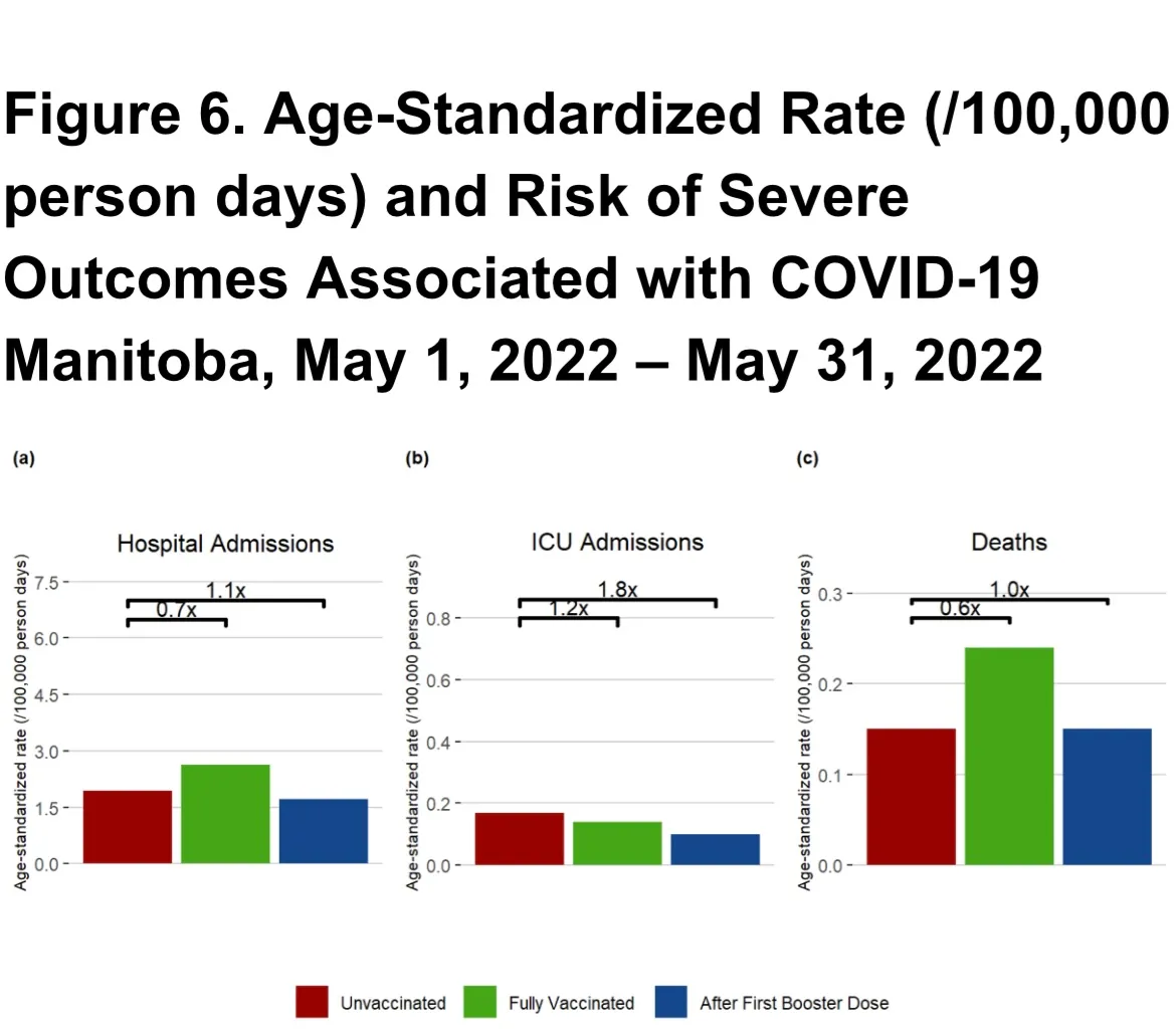 Nach offiziellen Schätzungen der kanadischen Provinz Manitoba ist es für Geimpfte wahrscheinlicher, dass sie ins Krankenhaus eingeliefert werden oder an Covid sterben, selbst wenn man berücksichtigt, dass sie älter sind als ungeimpfte Personen.