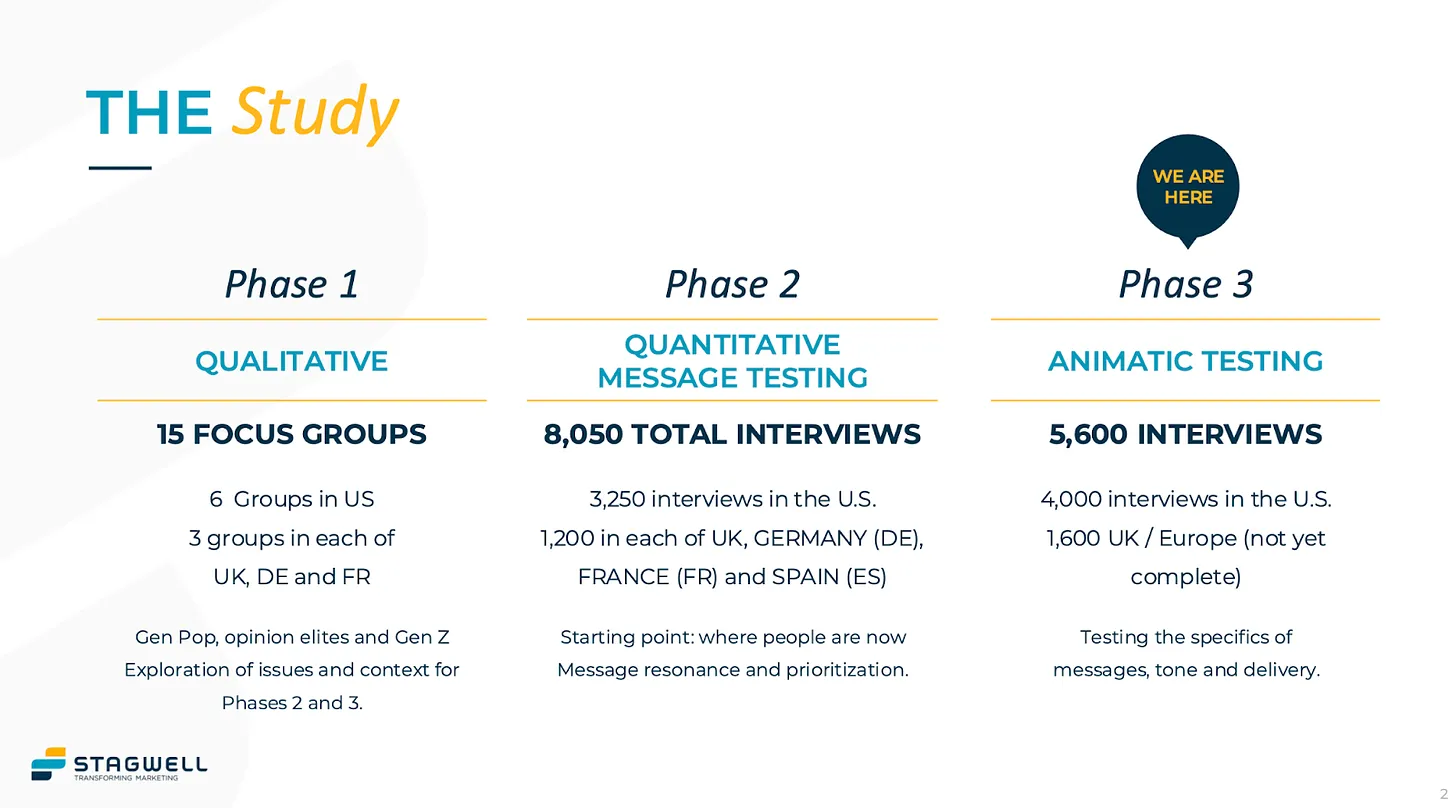 Die Arbeit wird von Stagwell Global durchgeführt, einem Unternehmen, das von dem berüchtigten politischen Aktivisten Mark Penn gegründet wurde, der als Vorsitzender und CEO des Unternehmens fungiert. Penn spendete 100.000 Dollar an AIPAC nach dem 7. Oktober 2023, und seine Verbindungen zum Likud reichen bis zu seiner Arbeit für Menachem Begins Wahlkampf um das Amt des Premierministers im Jahr 1981 zurück. Stagwell steht außerdem kurz davor, einen Auftrag ohne Ausschreibung von der Trump-Regierung zu erhalten, um die Einstellung der Amerikaner zu Impfstoffen zu untersuchen.