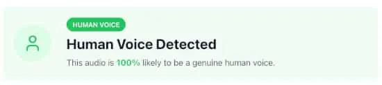 Was es auch wert sein mag, „AI Voice Sensor“ gibt an, dass diese Audioaufnahme „mit 100 %iger Wahrscheinlichkeit eine echte menschliche Stimme“ ist (die Quote gefällt mir!).