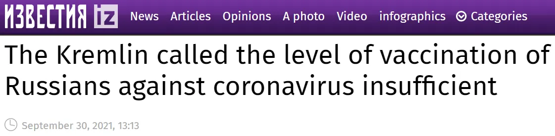 Am 14. Oktober beschimpfte Peskow ungeimpfte Russen und behauptete, ihre Weigerung, sich impfen zu lassen, sei unverantwortlich und „tödlich“.
