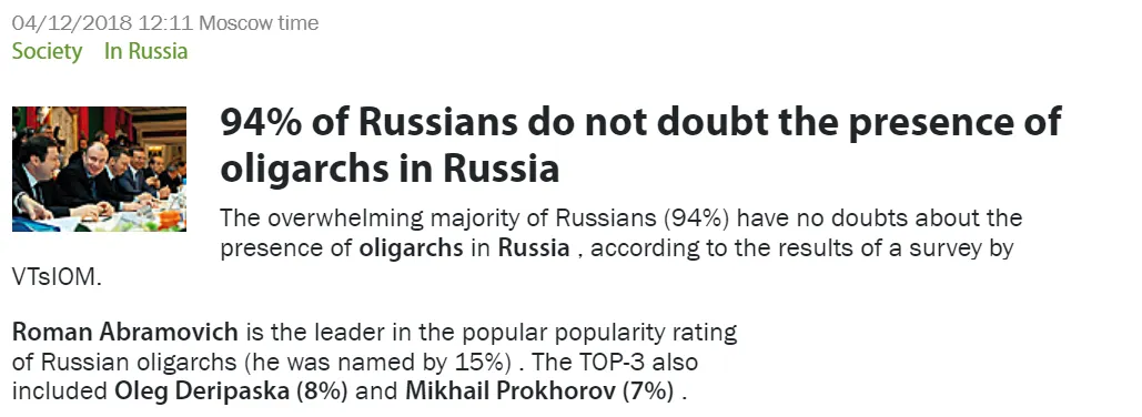 Am 17. Januar – einen Tag, nachdem Röper behauptet hatte, dass Russland im Gegensatz zum Westen nicht von parasitären Oligarchen geplagt wird – veröffentlichte die russische Zeitung „Nakanune“ eine Geschichte über die parasitären Oligarchen in Russland.