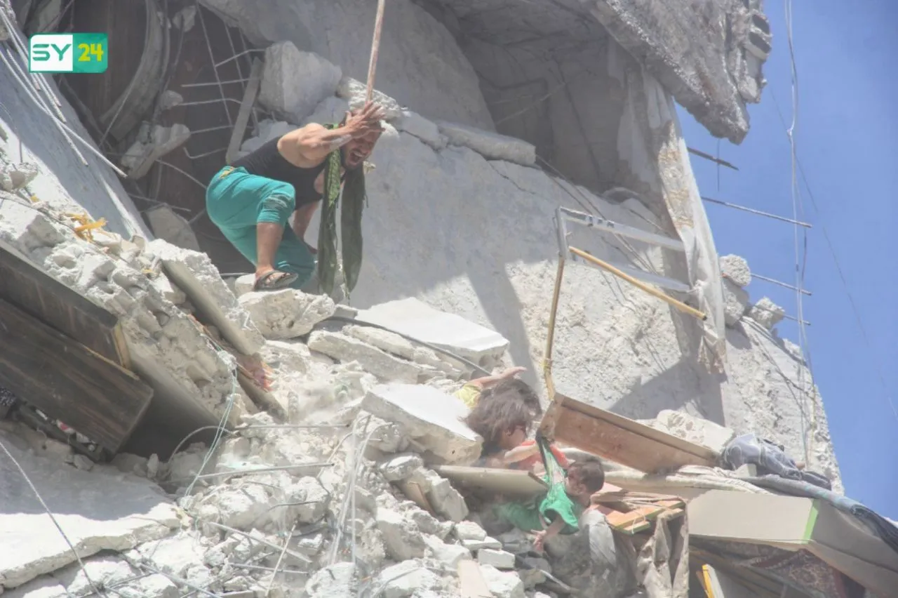 Im Juli 2019 verbreitete sich in den sozialen Medien ein Bild von zwei jungen syrischen Mädchen, die in den Trümmern des von der Opposition besetzten Idlib gefangen waren und versuchten, ihre Schwester in Sicherheit zu bringen, während diese am Abgrund eines baufälligen Gebäudes baumelte und ihr Vater entsetzt von oben zusah.
