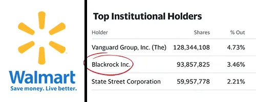 Sie erinnern sich vielleicht, dass wir zu Beginn dieser Untersuchung die Position von „BlackRock“ als einer der größten institutionellen Aktionäre von „Walmart“ hervorgehoben haben:
