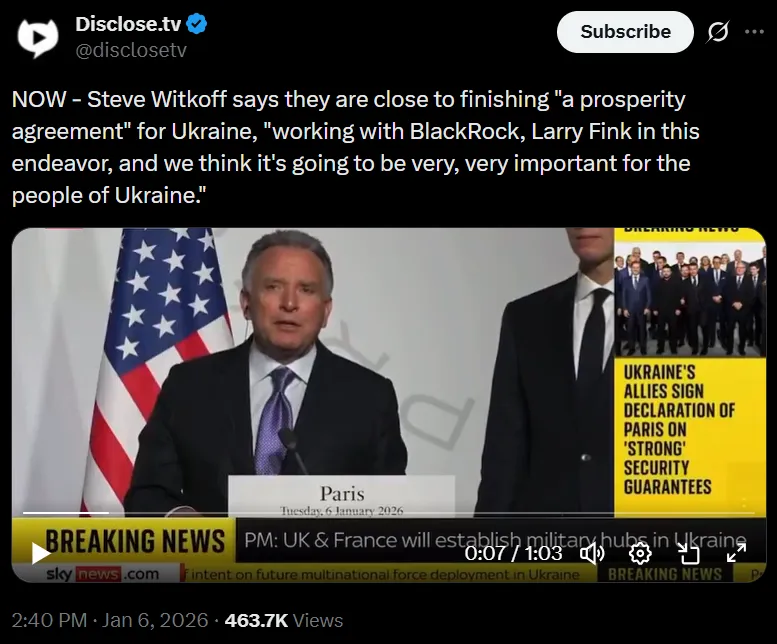 BlackRock steht an der Spitze der Wiederaufbau- und Astroturfing-Operationen. Laut Selenskyj ist CEO Larry Fink kontinuierlich an diesen Verhandlungen beteiligt.