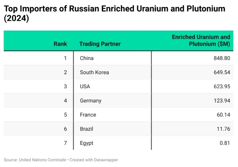 Es ist auch zutiefst heuchlerisch, wenn westliche Länder Indien für den Kauf von russischem Öl kritisieren, denn zu den größten Abnehmern von angereichertem Uran und Plutonium aus Russland gehören die Vereinigten Staaten, Deutschland und Frankreich. Sie benötigen diese Rohstoffe für ihre Atomindustrie.