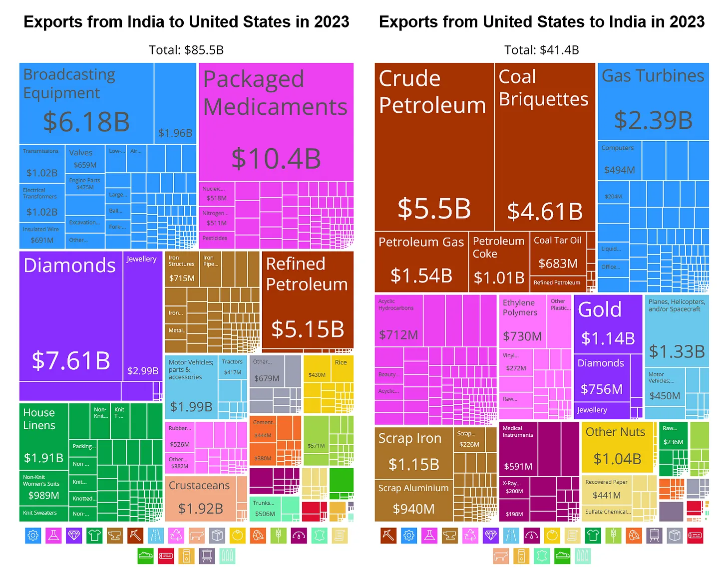 Betrachtet man die spezifischen Waren, die China in die USA exportiert, wird deutlich, wie viel stärker die USA vom Handel mit China abhängig sind als vom Handel mit Indien.