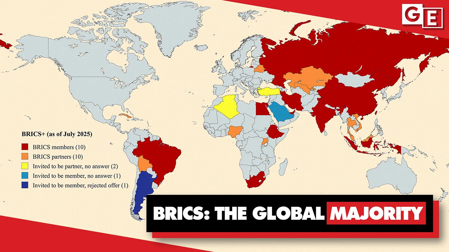 Das perfekte Beispiel dafür ist Trumps Umgang mit den BRICS, der von den Ländern des Globalen Südens geführten Organisation, die mittlerweile die Mehrheit der Weltbevölkerung vertritt.