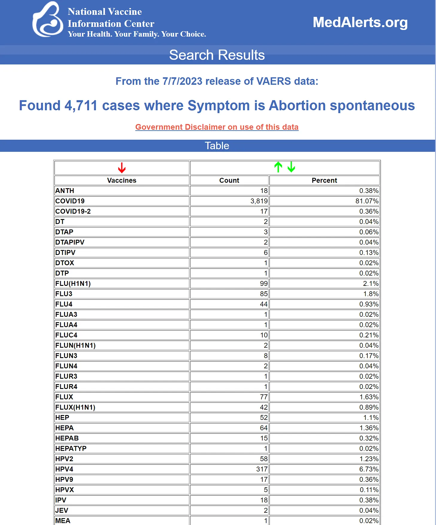 Das bedeutet, dass die COVID-Impfstoffe VIERMAL so viele Fehlgeburten verursachen wie alle Impfstoffe in der Geschichte von VAERS zusammen.
