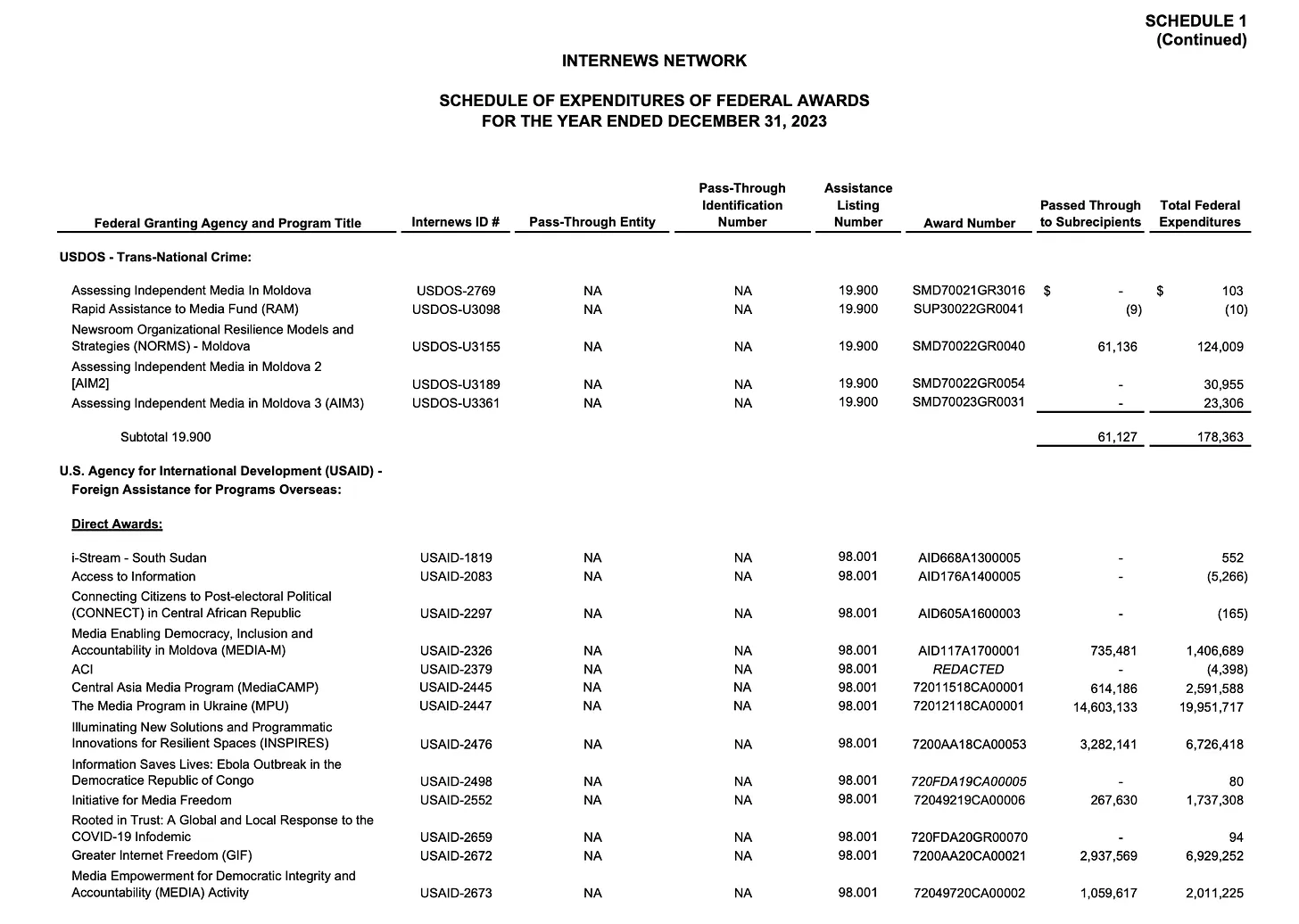 Hier ist der jüngste Prüfbericht von OCCRP, aus dem die Finanzierungsquellen der Regierung hervorgehen – 11 Millionen Dollar von US-Behörden, darunter 5,7 Millionen Dollar von USAID.