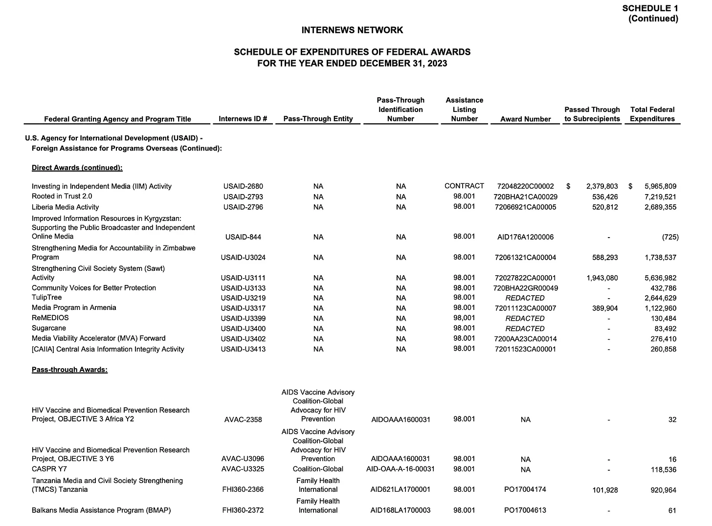 Internews betreibt eine Vielzahl von Nachrichtensendern in Europa, Lateinamerika, im Nahen Osten und in Afrika. Ein Großteil davon wird von USAID finanziert. Siehe die nachstehenden Prüfberichte: