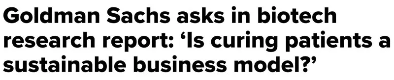 Das Geschäftsmodell der Pharmaindustrie zielt immer auf proprietäre Produkte ab, die ein chronisches Leiden teilweise verbessern und auf unbestimmte Zeit eingenommen werden müssen (da dies den größten Umsatz garantiert). Wenn es sich bei einem Produkt um ein nicht mehr patentgeschütztes Arzneimittel* handelt (so dass mit dem Verkauf nicht mehr viel Geld verdient werden kann) oder es ein Leiden tatsächlich heilt (was den Markt schnell zerstört), ist das inakzeptabel.