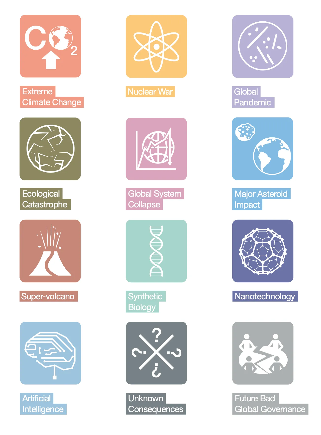 Bostrom hatte 2002 das Konzept der „existenziellen Risiken“ eingeführt und war der Herausgeber des Buches „Global Global Catastrophic Risks„, in dem Risiken wie „künstliche allgemeine Intelligenz, biologische Kriegsführung, nukleare Kriegsführung, Nanotechnologie, anthropogener Klimawandel, globale Erwärmung, stabiler globaler Totalitarismus sowie Methoden zur Vorhersage und Bewältigung von Katastrophen“ aufgelistet sind.