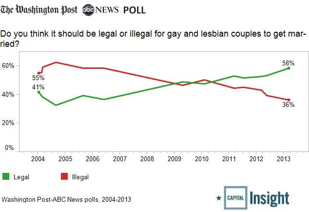 Das bedeutete, dass die Erzählung für den Teil der Bewegung, der sich ausschließlich auf die Rechte der Homosexuellen bezog, zu ihrem natürlichen Ende gekommen war und nicht weiter vorangetrieben werden konnte. Es gab kein Wasser mehr, das aus dem Stein gepresst werden konnte, denn die schwule Gemeinschaft hatte ihr wichtigstes Ziel erreicht – die letzte Grenze ihrer Akzeptanz.
