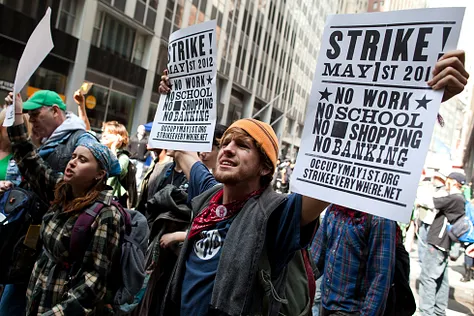 Dies führte zu einer Flutwelle der Unzufriedenheit mit den Finanzinstituten, die durch die “Wall Street” verkörpert wurden. Und so entstand die “Occupy-Bewegung” von 2011, deren erste Proteste mit den Tagen des Lehman-Zusammenbruchs im September zusammenfielen. Diese Bewegung erschütterte die herrschende Klasse der Bankenkabale wirklich bis ins Mark. Sie brauchten einen Weg, um mehr als nur Schadensbegrenzung zu betreiben. Das gesellschaftliche Blatt wendete sich gegen sie, und ein wachsender Chor der radikalisierten Avantgarde rief zu physischen Angriffen auf die Banken auf – im Grunde zu einer Revolution.